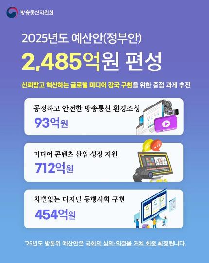 [한국쇼핑몰뉴스, 최영진기자] 방송통신위원회는 2025년도 예산으로 총 2,485억 원을 편성하여 국회에 제출했습니다.