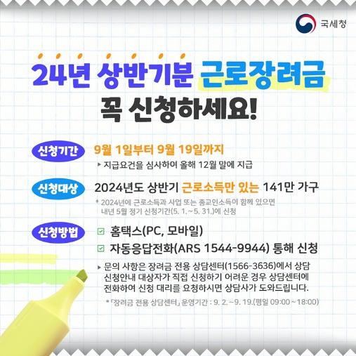 [한국쇼핑몰뉴스, 최영진기자] 24년 상반기 분 근로장려금 꼭 신청하세요!