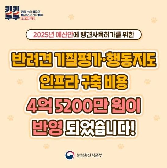 농림축산식품부 2025 예산안에 맹견 기질평가 인프라 구축 비용을 반영