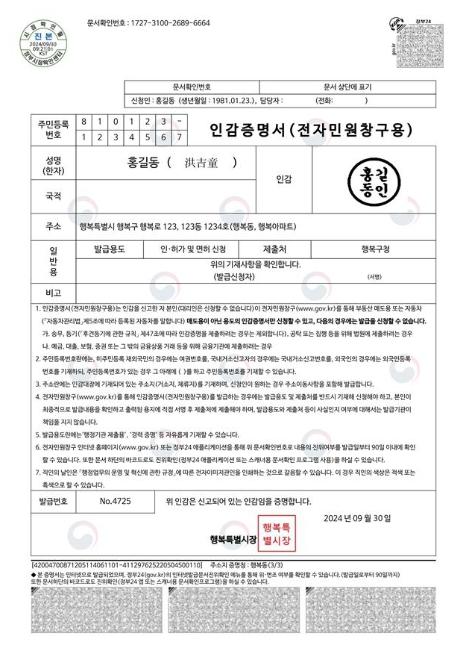 아울러, 인감증명서 온라인 발급 서비스가 시행됨에 따라 인감증명서에 위·변조 검증 장치도 도입된다.