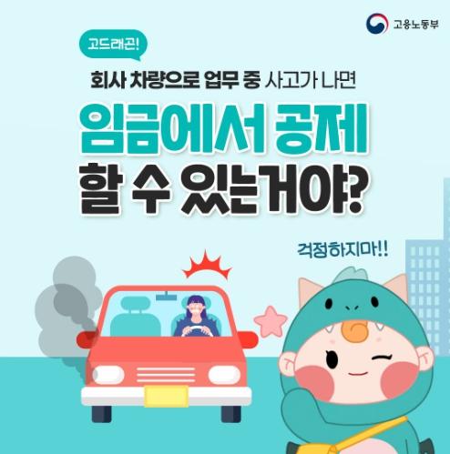[한국쇼핑몰뉴스, 최영진기자] 회사 차량으로 업무 중 사고가 나면 임금에서 공제될까요?