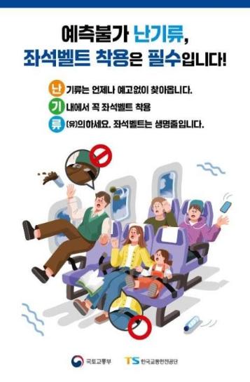 이번 캠페인은 항공기를 이용하는 승객들에게 난기류에 대한 경각심을 높이고, 비행 중 난기류에 의해 발생할 수 있는 부상 등 안전사고를 예방하고자 마련했다.