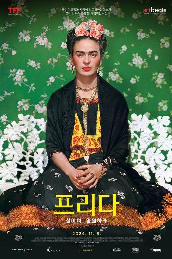 공개된 메인 포스터는 프리다 칼로가 화려한 장신구와 귀걸이 그리고 머리에 꽃으로 장식된 리본을 하고 하얀 꽃을 배경으로 다소곳이 앉아 있는 모습이 흡사 살아 있는 듯 강렬한 인상을 안겨준다.