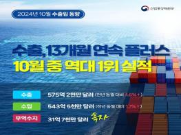 대한민국 수출이 13개월 연속 플러스를 기록했습니다.