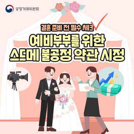 [한국쇼핑몰뉴스, 최영진기자] 드레스, 스튜디오 촬영, 메이크업… 필수 옵션인데 왜 추가 요금을 내야 할까요??공정위가 예비부부를 울리는 ‘스드메’ 갑질 3종 세트를 바로 잡기 위해 18개 결혼준비대행업체의 이용약관을 심사하여 6개 유형의 불공정약관을 시정했습니다.!