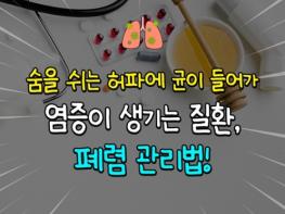 숨을 쉬는 허파에 균이 들어가 염증이 생기는 질환인 폐렴은 늦가을에 발생률이 더욱 높아지는데요.?자칫 감기로 오해할 수 있어 특히 세밀한 주의와 관심이 필요한 환절기 폐렴! 예방 및 관리법은 어떤 것들이 있는지 함께 알아보겠습니다.