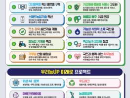디지털 대전환과 바이오경제 시대에 타 산업 분야 선도기업 벤치마킹, 첨단산업 기술의 농업적 활용 확대를 통해 우리 농업의 미래 신성장 동력을 창출하는 민·관 파트너십 기반 중장기 ‘미래농업혁신 4대 프로젝트(우리농UP 미래로)’를 추진한다.