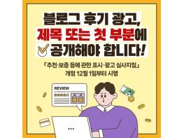 [한국쇼핑몰뉴스, 최영진기자] 블로그 후기 광고, 제목 또는 첫 부분에 공개해야 합니다.
