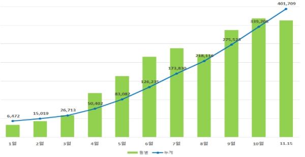 [한국쇼핑몰뉴스, 최영진기자] 농림축산식품부에서 개설하여 한국농수산식품유통공사가 운영 중인 '농수산물 온라인도매시장'의 올해 거래금액이 지난 11월 15일 4,000억원을 돌파했다.