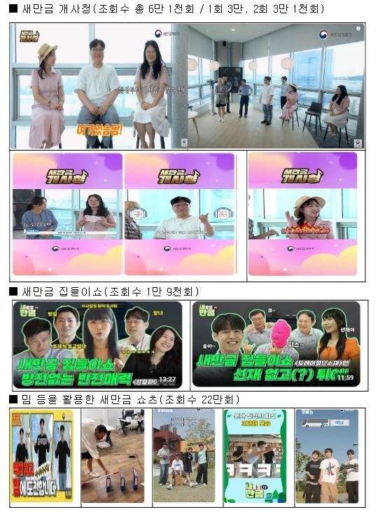 이밖에 새만금 입주기업(성일하이텍, 도레이 등)의 출연 영상으로 기업 지원 정책을 소개한‘새만금 집들이쇼’와 새로운 이슈를 접목한 밈을 활용한 ‘새만금 쇼츠’ 등을 직접 기획 제작한 콘텐츠로 새만금의 정책을 다각도로 소개하여 국민에게 새로운 시선을 제공했다.