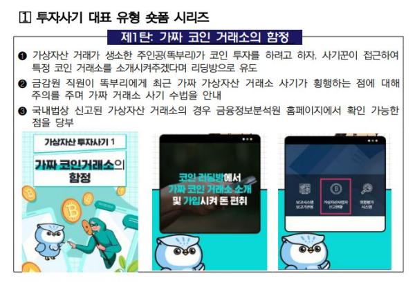 투자 사기를 방지하려면, 고수익 보장을 약속하는 경우 반드시 의심해볼 필요가 있다. 또한, 금융감독원은 '가상자산 불공정거래 및 투자사기 신고센터'를 운영하며, 피해 예방을 위한 다양한 홍보 활동을 지속적으로 전개하고 있다.
