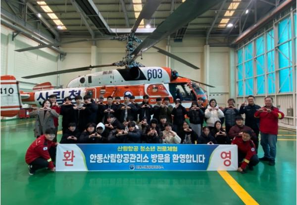 또한, 안동산림항공관리소에서 보유하고 있는 중형헬기(KA-32T/3대 보유)지상탑승 체험을 했으며, 조종사와의 만남에서는 헬기 비행원리, 공중 산불진화 방법, 조종사가 되는 진로방향을 소개했다.