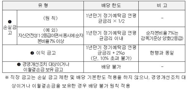 배당제한 사전통지에 따라 앞으로 손실 금고는 원칙적으로 배당이 제한되며, 구체적인 제한 내용은 다음과 같다.