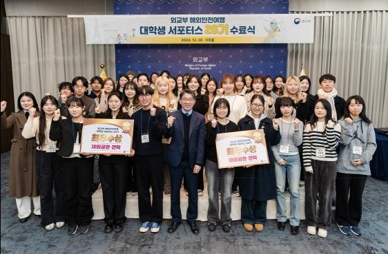 [한국쇼핑몰뉴스, 최영진기자] 외교부는 12월 20일 윤주석 영사안전국장과 제20기 해외안전여행 대학생 서포터스 등 50여명이 참석한 가운데 서포터스 수료식을 개최했다.