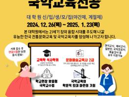본 과정은 교육학 석사학위와 함께 문화예술교육사 2급 자격증을 취득할 수 있는 차별화된 교육과정을 제공한다. 특히, 학교 현장에 바로 적용 가능한 국악 교수법과 체계적인 학문적 연구 기회를 통해 전통문화 교육자로서의 역량을 높일 수 있다.