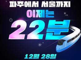 [한국쇼핑몰뉴스, 최영진기자] 약 1시간 30분 걸렸던 파주~고양~서울 이동 시간이 이제, ‘22분’으로 줄어들어요. 지하철보다 3배 정도 빠른 수도권 광역급행철도(GTX) A노선 ‘운정중앙~서울역’ 구간이 12월 28일부터 운행을 시작합니다.