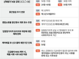 ‘입찰참가자격 유지의무’ 위반에 대한 제재를 완화한다. 계약업체는 계약 중 입찰참가자격을 유지하지 못하게 되면 위반의 정도와 관계없이 계약해지, 부정당업자 제재 등의 처분을 받았다.