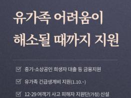 정부는 중소기업 경영인과 소상공인 희생자분들의 대출·보증 상환 유예, 만기 연장 등 금융 지원 방안을 추진합니다. 경영 안정을 위해 추가 자금이 필요한 경우 신규 자금도 저금리로 지원합니다.