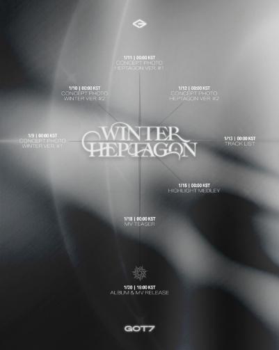카카오엔터테인먼트는 갓세븐(JAY B, 마크, 잭슨, 박진영, 영재, 뱀뱀, 유겸)의 미니 앨범 'WINTER HEPTAGON(윈터 헵타곤)' 발매를 기념해 공식 SNS를 새롭게 단장하고, 이를 통해 'WINTER HEPTAGON'의 스케줄러를 공개하며 본격적인 티징을 시작했다.