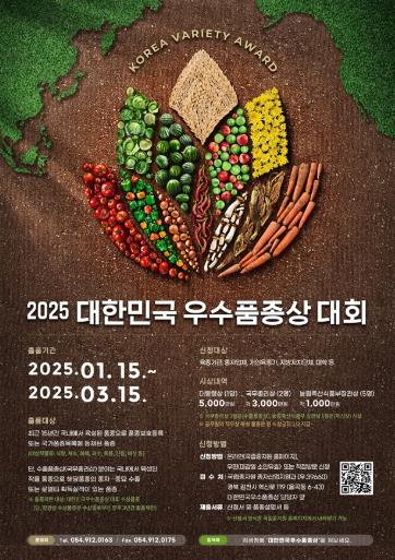 [한국쇼핑몰뉴스, 최영진기자] 국립종자원은 2025년 제21회 대한민국우수품종상 대회 출품을 1월 15일부터 3월 15일까지 접수한다.