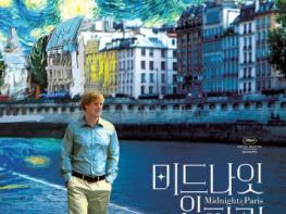 주인공 ‘길’이 파리의 센 강을 따라 걷고 있는 모습을 명화처럼 그려낸 포스터 위로 새롭게 바뀐 타이틀 로고가 세련됨을 더한다.