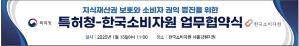 윤수현 한국소비자원장은 “양 기관이 협력체계를 구축함으로써 지식재산권 허위표시나 위조상품 판매로 인한 소비자 피해도 줄일 수 있을 것으로 기대한다”면서, “지속적인 협력을 통해 소비자가 신뢰할 수 있는 시장환경 조성에 기여할 수 있도록 노력하겠다”고 밝혔다.