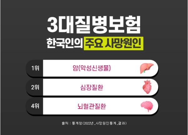 [한국쇼핑몰뉴스, 최영진기자] 한국인의 주요 사망원인중에 암, 뇌혈관질환, 심혈관질환은 흔히 3대질병이라 일컬어지며 살아가면서 가장 먼저 대비해야 하는 중대질병으로 항상 강조되고 있다. 이들 질병에 미리 대비하기 위해 가입하는 것이 진단비보험인데, 이러한 3대질병진단비를 중점으로 보장하는 보장성보험이 3대진단비보험 이다. 3대질병진단비보험은 각각의 질병에 주목해서 보장하기도 하지만, 나에게 맞는 추가 특약을 잘 골라서 가입한다면 종합건강보험으로도 충분히 활용도가 높다.