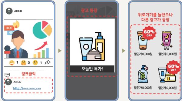 또한 서비스 광고·알림 분야에서는 이용자가 원치 않는 알림·광고를 수신 또는 시청하도록 하는 모바일 앱 이용 유도나 자동실행 광고 등의 다크패턴 사례가 발견됐다.