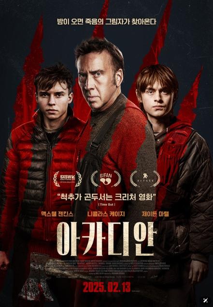 SXSW 영화제, 부천국제판타스틱영화제, 시체스국제판타스틱영화제에 초청되어 해외 매체들의 찬사를 받고 있는 크리처 액션 스릴러 '아카디안'은 오는 2월 13일(목) 개봉 예정이다.