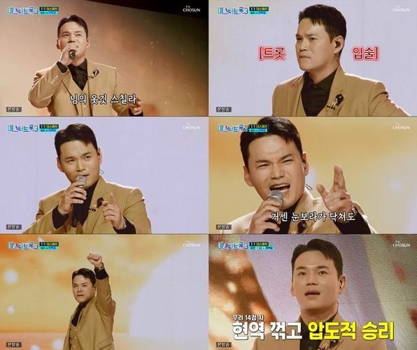 짜릿한 고음으로 도입부부터 모두를 기립시킨 그는 구성진 보컬과 특유의 매력적인 음색으로 트로트의 맛을 제대로 살리며 ‘트로트 신생아’의 반란을 제대로 알렸다.