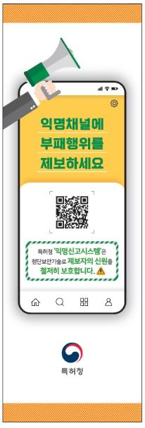 특허청은 익명신고시스템 접속 QR 코드가 포함된 홍보 현수막(배너)와 스티커를 소속기관 및 산하 공공기관 등 관련 단체에 배포하고, 사회관계망서비스(SNS)를 통해 적극적으로 홍보하여 채널의 활용도를 높일 계획이다.