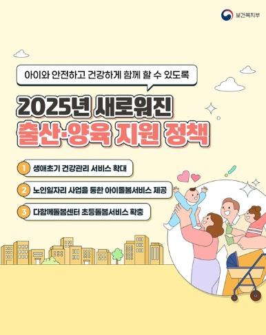 [한국쇼핑몰뉴스, 최영진기자] 출산 후 산모와 아이를 위한 의료 및 건강관리 지원부터 신생아부터 초등생까지, 각 가정에 맞는 돌봄 지원으로 양육 부담을 완화하기 위한 2025년 새로워진 출산·양육 지원 정책을 소개합니다.