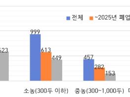 농장 규모별로 보면 상대적으로 폐업이 용이한 소농(300두 이하) 뿐만 아니라 중·대농에서도 조기 폐업에 적극 참여 중인 것으로 나타난다. 300두 초과 중·대농(538호)의 32.3%(174호)가 폐업을 완료했으며, 60.4%(325호)가 연내 폐업할 예정으로 개식용종식이 큰 차질 없이 이행될 것으로 보인다.