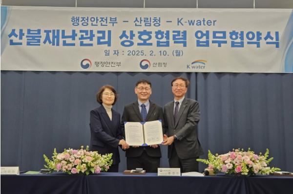 업무협약은 행정안전부 홍종완 사회재난실장, 산림청 이미라 차장, 한국수자원공사 류형주 부사장이 참석한 가운데 진행됐다.