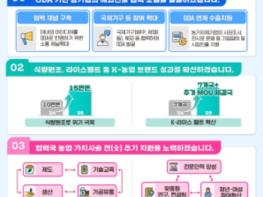 농식품부는 식량원조와 케이(K)-라이스벨트 등 국제사회에서 긍정적인 평가를 받고 있는 대표 사업들을 고도화함으로써 케이(K)-농업 브랜드로 자리매김하고 모범사례를 확산해 나갈 계획이다. 쌀 식량원조 사업은 지원 국가와 물량을 확대하고 지원 품목도 다양화한다. 아프리카 동서부 중심의 케이(K)-라이스벨트 사업은 남부로 확대하고 쌀 전후방 산업, 농촌 생활환경개선, 교육·복지 향상 등을 통합적으로 지원할 계획이다.