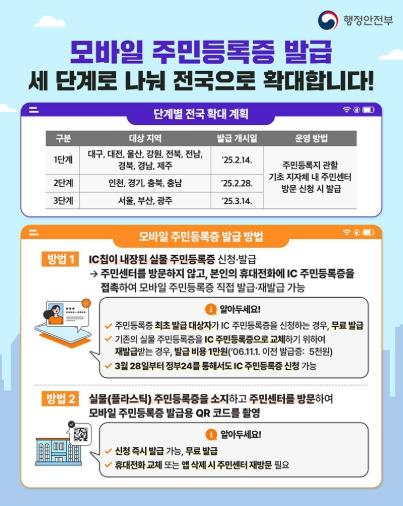 [한국쇼핑몰뉴스, 최영진기자] 모바일 주민등록증 발급 세 단계로 나눠 전국으로 확대합니다!