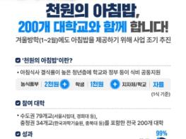 [한국쇼핑몰뉴스, 최영진기자] 천원의 아침밥, 200개 대학교와 함께 합니다!