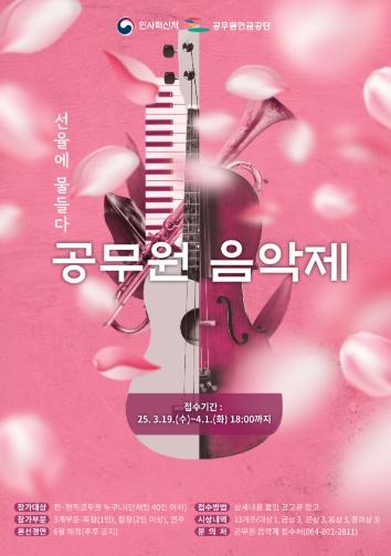 제19회 공무원 음악제가 3월 19일부터 4월 1일까지 참가자 모집을 시작으로 가장 먼저 문을 연다.
