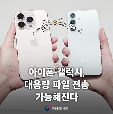 애플(Apple Inc)의 '아이폰'에도 차세대 메시지 전송 서비스가 도입돼 삼성전자의 '갤럭시폰'과 대용량 파일 전송 및 채팅 형식의 메시지 주고받기가 가능해진다.