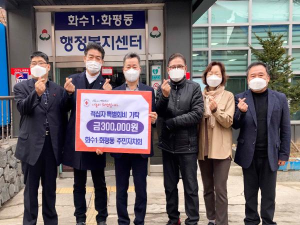 인천시 동구 화수1·화평동 주민자치회(회장 김동주)는 지난 15일 30만 원의 적십자 특별회비를 모아 대한적십자회에 전달했다.
