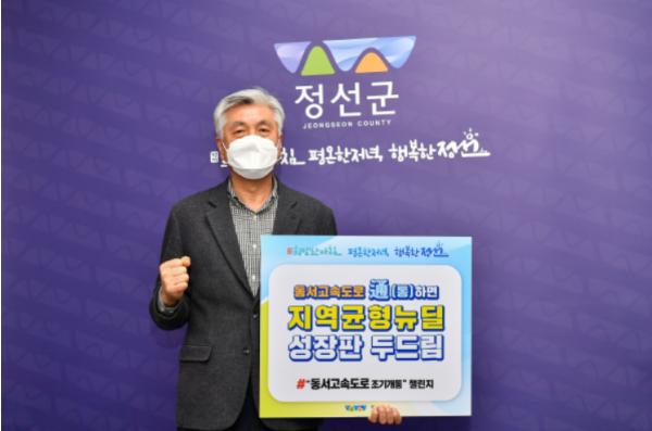 15일 최승준 정선군수는 15일 동서고속도로 조기 개통의 필요성을 대국민에게 홍보하기 위하여 ‘동서고속도로 조기개통 챌린지’에 동참했다.