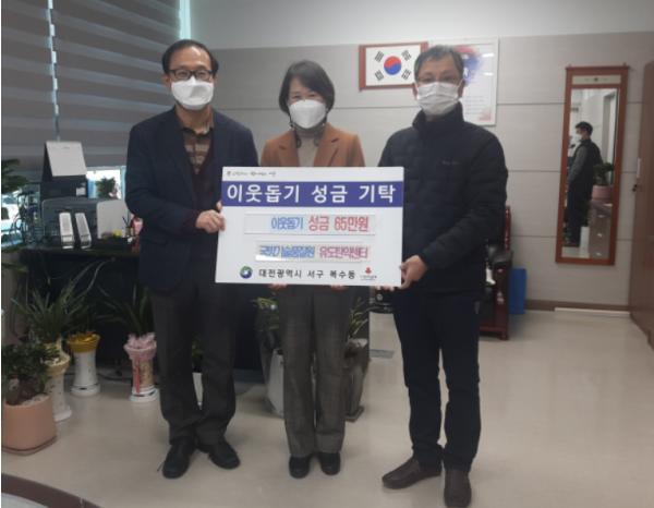 대전광역시 서구 복수동 행정복지센터는 국방기술품질원 유도탄약센터로부터 이웃돕기 성금 65만 원을 기탁받았다고 15일 밝혔다.