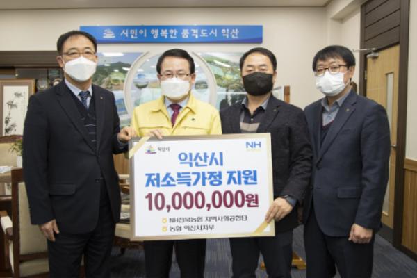 익산시는 농협익산시지부와 NH전북농협 지역사회공헌단이 15일 익산시청을 방문해 이웃돕기 성금 1천만원을 기탁했다고 밝혔다.