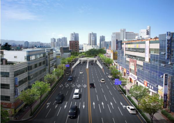 그동안, 보상협의 지연과 소음방지공법 변경시행, 폭우 침수피해 등으로 공사가 지연됐으나, 인력과 장비를 집중 투입하는 등 공사추진에 총력을 기울인 결과, 지난 1월말 지하차도 구조물 시공을 완료하고 20일 임시개통을 하게 되었다.