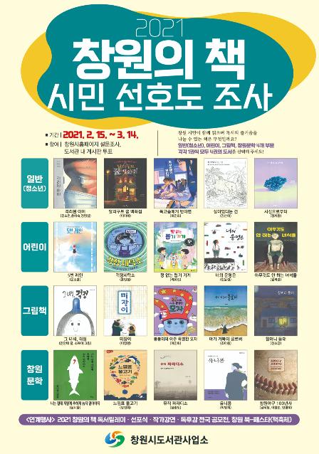 창원시 홈페이지를 통한 설문조사와 도서관 현장 투표의 방법으로 진행되며, 이번 선호도 조사 결과를 바탕으로 3월 17일 예정된 제2차 2021 창원의 책 선정위원회를 거쳐 최종 4권의 책이 선정된다.