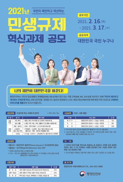 응모된 제안은 규제·소상공인·경제 전문가 등으로 구성된 ‘민생규제심사단’의 심사를 거쳐 8월에 행정안전부 장관상과 시상금을 수여할 계획이다.
