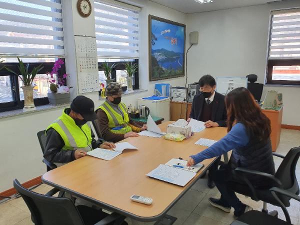 윤현규 능포동장은 평소 능포동 시가지 및 골목골목을 청소하노라 고생이 많은 두 분의 노고를 치하하고, 한 순간의 방심은 큰 사고로 이어질 수 있으며 작업 시 무엇보다 안전을 도모할 것을 당부했다.