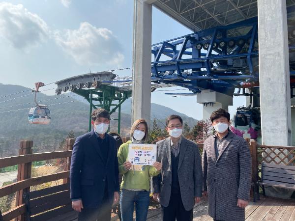 통영관광개발공사가 어린이들의 보행안전과 스쿨존 안전문화를 확산하기 위해 15일 오후 통영케이블카 하부승강장에서‘어린이교통안전 릴레이 챌린지’에 동참했다.