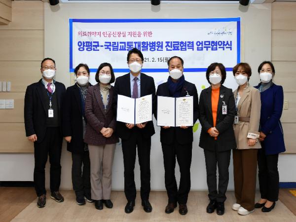 양평군은 지난 15일 국립교통재활병원과 안전한 혈액투석 치료 환경 구축을 위한 “의료취약지 인공신장실 지원을 위한 진료협력 업무협약”을 체결했다.