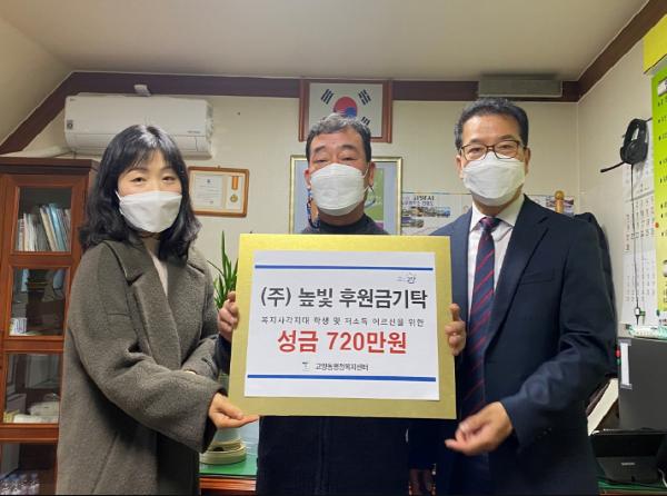 이날 전달식에서 ㈜높빛은 고양동의 저소득 학생 및 어르신을 위한 장학금 및 생계비에 써달라며 후원금 720만원을 기탁했다.